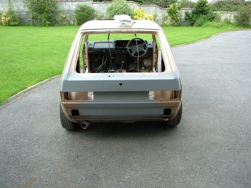i started out thinking that i would lift out the engine throw in a new one as quick as posable and clean up the body but one thing led to another and i decided on a complete respray. i want it as cheap so i stripped it completely leaving only the dash in place